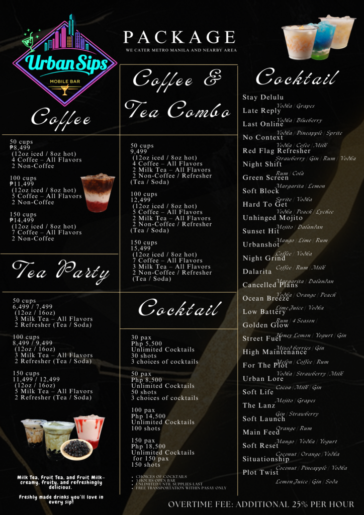 • Customized drink menu (cocktails, mocktails, signature drinks)